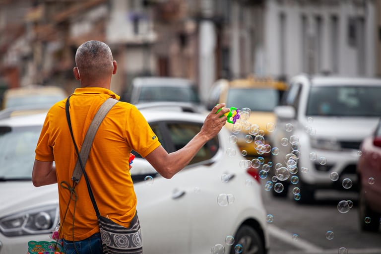 J’ai eu de belles discussions avec un footballeur, sélectionné en équipe nationale et qui a eu un grave accident. Après une grave dépression, il s’est reconstruit en jonglant avec un ballon aux feux rouges, les conducteurs le reconnaissent et lui donnent quelque chose. Toujours aux feux rouges, un clown présente un numéro de cirque, malgré une jambe appareillée. Je n’ai qu’à m’assoir sur un banc pour rencontrer l’armée des petits-vendeurs qui achète en gros et revend à l’unité fruits, légumes, babioles chinoises, vêtements… Tous ceux qui ont un talent le monnaient : cuisine, pâtisserie, maquillage et esthétique, réparations en tout genre, artisanat...